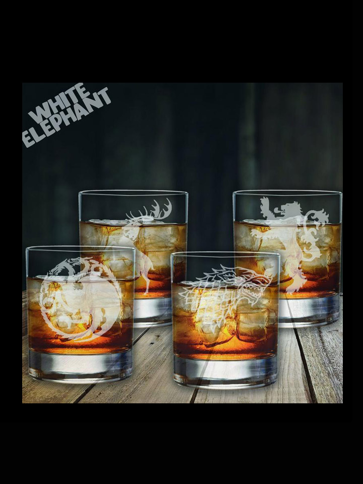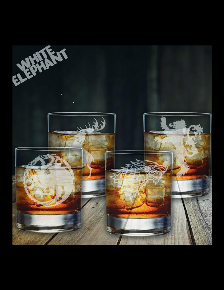 Laser Etched Game of Thrones 4 Glass Gift Set Whiskey/HighBall/Pint/Tankard