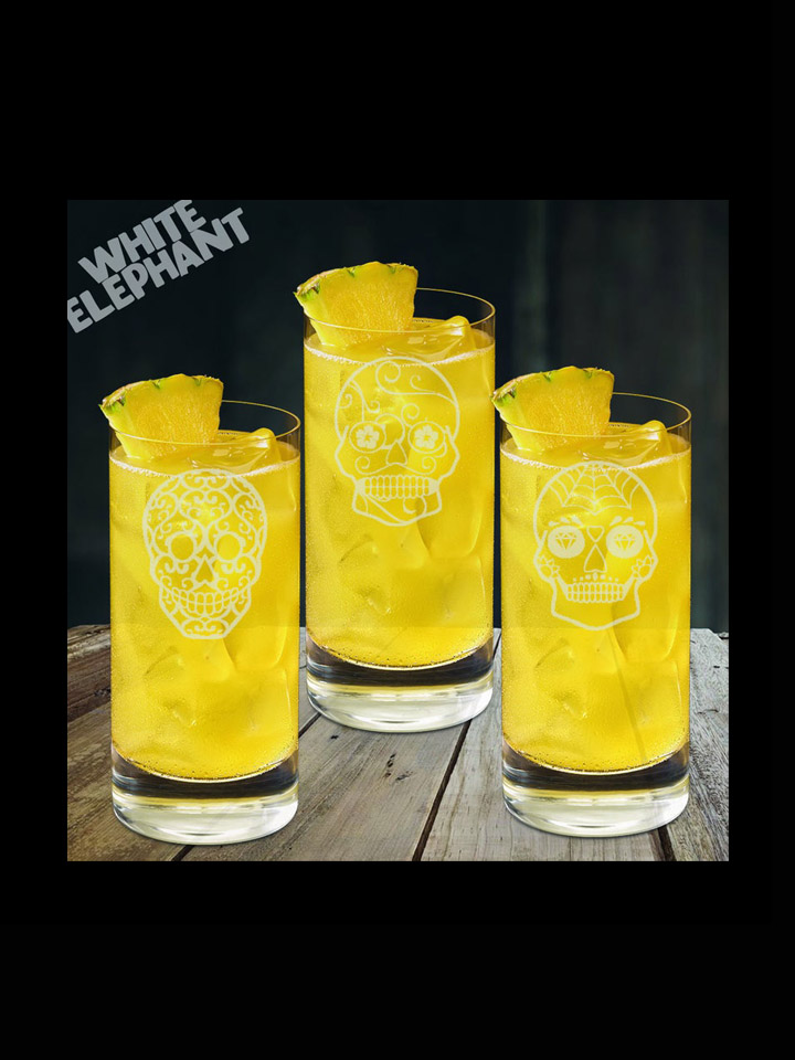 Laser Etched Sugar Skull 3 Whiskey/High-Ball/Pint Glass Gift Set